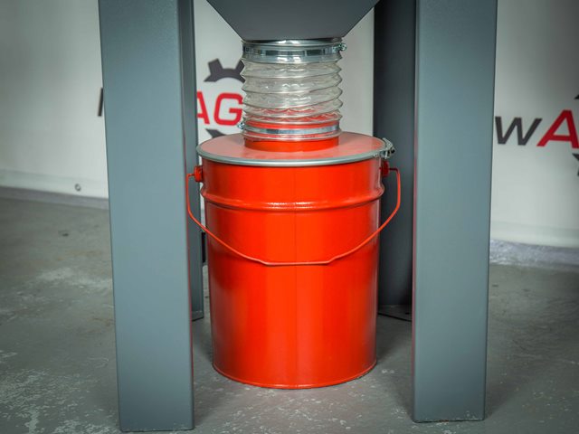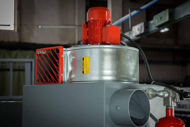 Сверху корпуса фильтра установлен радиальный вентилятор, который создает разряжение воздуха, посредством которого из камеры удаляется пыль и не пригодные частицы. Объем удаляемого воздуха регулируется заслонкой, установленной на всасывающем патрубке.
