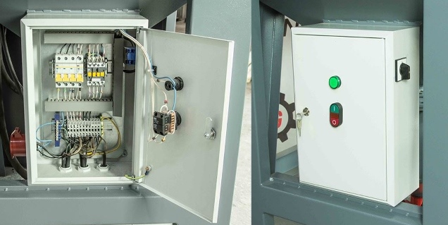 Шкаф управления собран в соответствии с мировыми стандартами, из качественных комплектующих с соблюдением всех мер защиты, исключающих поражение производственного и обсуживающего персонала электрическим током.